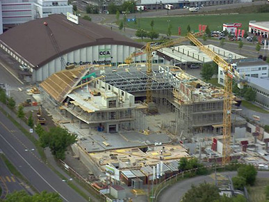 Walter Schmid AG, Glattbrugg René Schmid, Zürich Umweltarena Spreitenbach -Fachwerkkonstruktion über Eventhalle -Dachbrücken / Laufstege -Innentreppen / Geländer | |