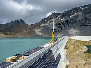 AXPO Solution AG; Baden energiebüro ag, Zürich Solarkraftwerk KLL-Staumauer Muttsee primäre Unterkonstruktion für Solarpanels | |
